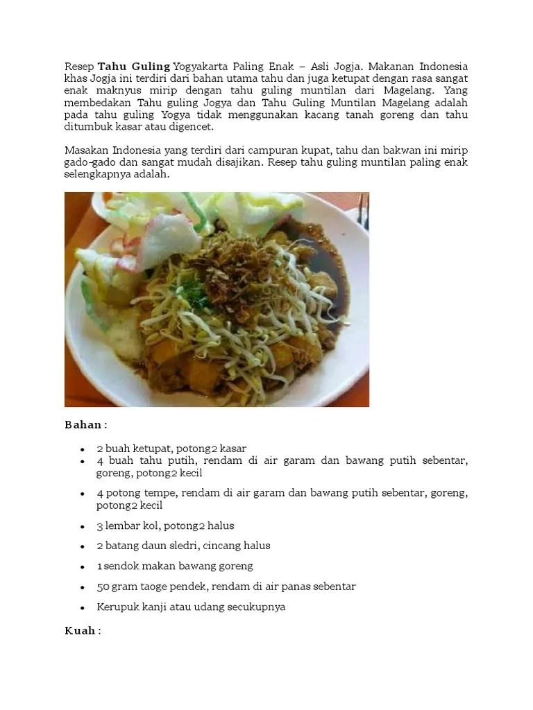 Kamu bisa meniru cara membuat dan resep tahu guling … Siram dengan kuah tahu guling yang sudah dibumbui. Tahu guling ini bisa dimakan dengan lontong/ketupat atau nasi. Resep diadaptasikan dari buku mudah memasak kuliner nusantara, gramedia. Cara membuat tahu guling (kupat tahu versi jogja) kalau tahu kupat magelang kan bumbunya pakai kacang ya.kalau tahu guling ala yogya itu kuah kecap aja.jadi.
